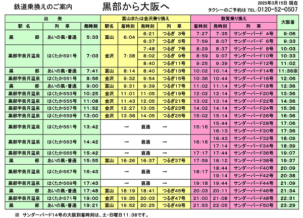 大阪・名古屋方面への鉄道乗換えのご案内